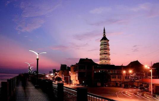 振風塔,坐落于安徽省安慶市迎江寺內(nèi),原名萬佛塔,又名迎江寺塔,后取名“振風”,有“以振文風”之意。振風塔位于安徽省安慶市迎江區(qū)沿江東路北側,瀕臨長江。安慶振風塔從明穆宗隆慶二年(1568年)開始興建,于明隆慶四年(1570年)建成,是長江沿岸古塔之一。該塔除具有佛塔的功能外,還具有導航引渡的功能。塔高72.74米,位居全國108座磚石結構古塔中第二,享有“萬里長江第一塔”和“過了安慶不看塔”的盛譽。此塔挺拔秀麗,氣勢宏偉,共七層八角,內(nèi)有168級臺階,浮雕佛像達千余尊。