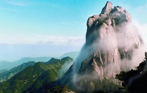 天柱山,亦稱(chēng)“皖山”或“潛山”,在潛山縣城西北部,漢武帝曾封為南岳。主峰天柱峰,海拔1485米,石骨嶙峋,奇峭險(xiǎn)峻。四周有飛來(lái)峰、天獅峰、蓮花峰、觀音峰、黑虎峰等山峰,危崖羅列,怪石嵯峨;云海瀑布,幽深瑰麗。有三祖寺、馬祖庵、司元洞、渡仙橋、煉丹臺(tái)、石牛洞等勝跡。山中有“天柱云霧”名茶及瑞香木、魚(yú)鱗木等多種珍貴植物。為世界地質(zhì)公園、國(guó)家重點(diǎn)風(fēng)景名勝區(qū)。境內(nèi)的天柱山又名皖山、皖公山,因其主峰“一柱擎天”而得名。公元前106年漢武帝南巡時(shí)封其為“南岳”,后為隋文帝詔廢,故被人們尊為“古南岳”。景區(qū)內(nèi)“峰雄、石奇、洞幽、水秀”,兼有豐富的人文景觀,集北山之雄,南山之秀于一身,自然風(fēng)光雄奇靈秀,人文景觀博大精深,堪稱(chēng)一幅幅絕妙的山水畫(huà)卷。1982年被國(guó)務(wù)院公布為全國(guó)首批44家國(guó)家級(jí)重點(diǎn)風(fēng)景區(qū)勝區(qū)之一,2011年5月5日批準(zhǔn)為安徽繼黃山、九華山之后,第三家“AAAAA”級(jí)旅游區(qū)、并獲得國(guó)家森林公園、國(guó)家地質(zhì)公園、中國(guó)自然和文化遺產(chǎn)地等稱(chēng)號(hào)。