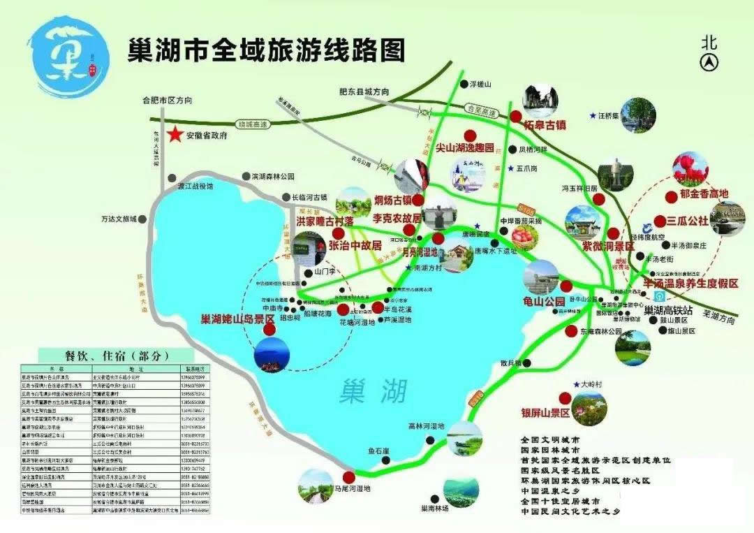 其中代表性景點(diǎn)有紫微洞、銀屏山、龜山、四頂山、巢湖濕地、東庵森林公園、平頂山“金釘子”、巢湖魚(yú)龍化石、紅石咀、黑石咀等,紫微洞為國(guó)家AAAA級(jí)景區(qū),銀屏山、中廟-姥山島為國(guó)家AAA級(jí)景區(qū)并正積極爭(zhēng)創(chuàng)國(guó)家AAAA級(jí)景區(qū)。