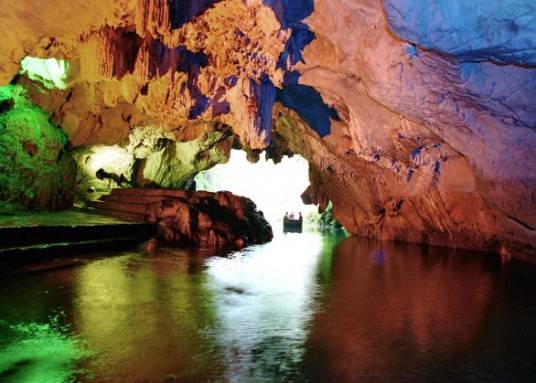 魚龍洞,與太平湖衣袂相連,距舉世聞名的黃山50公里,距佛教勝地九華山25公里,魚龍洞洞口如張開的鱷魚嘴,一泓碧水淙淙而出,終年不涸。該洞全長(zhǎng)5000余米,有清澈的地下河貫穿始終,初極窄,復(fù)開闊,氣勢(shì)磅礴,宏偉觀,洞內(nèi)奇石紛列,形態(tài)各異,或如蓮花綻放,或如玉樹臨風(fēng),或如眾僧朝圣,或如鐘鼓盤地,極為傳神,有東海、南海、北海、西!八暮!埃吧徎▽m、月宮、慶喜宮、鯉魚宮、玉寢宮、白鱔宮、點(diǎn)將臺(tái)、犀牛宮、藏樂宮、天宮、聚寶宮”十一宮“,2014年5月新增了走路進(jìn),坐船出項(xiàng)目,使得游人既可徒步瀏覽,又可乘木舟漫游,奇妙的景色與水聲、波光、燈影交織成一團(tuán),撲朔迷離,意趣橫生。