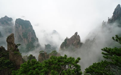 “自古黃山云成!保S山是云霧之鄉(xiāng),以峰為體,以云為衣,其瑰麗多姿的“云!币悦、勝、奇、幻享譽(yù)古今,尤其是雨雪后的初晴,日出或回落時(shí)的“霞!陛^為壯觀。怪石、奇松、峰林飄浮在云海中,可領(lǐng)略“海到盡頭天是岸,山登絕頂我為峰”的境界。