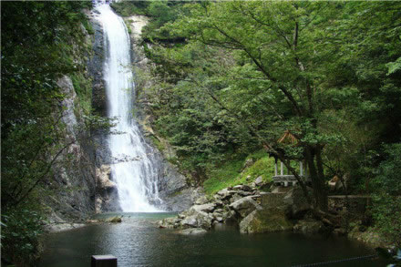 天堂寨森林公園的水景主要表現(xiàn)在瀑布與溪水潭池上,其中尤以一號瀑布、三號瀑布、龍井河溪為最。一號瀑布(九影瀑布):瀑布高掛,落差71米,水簾幅寬8米,瀑布下有深潭,潭面30平方米。三號瀑布(瀉玉瀑布)垂直高度62米,水簾寬11—13米,瀑巖呈淡紫色,略傾斜且?guī)r面凸凹參差不齊。