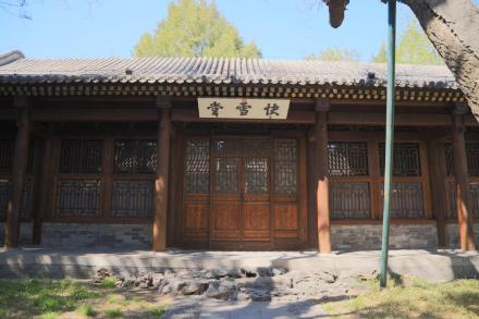 快雪堂始建于乾隆四十四年(1775年),院內(nèi)還有澄觀堂、浴蘭軒兩座大殿。四周由彩繪游廊連接,快雪堂東西兩側(cè)的游廊內(nèi)嵌有晉代至元代二十位書法家八十篇墨跡石刻四十八方,其中王羲之《快雪時(shí)晴帖》與乾隆皇帝所作的《快雪堂記》最為著名。