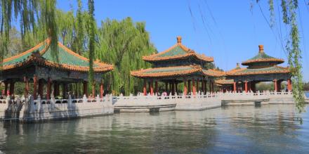 北海公園全園以北海為中心,遼、金、元在此建離宮,明、清辟為帝王御苑,屬于中國(guó)古代皇家園林。