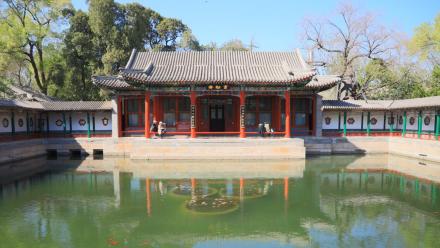 東岸濠濮間、畫舫齋、蠶壇等幾組庭院式園中之園,掩映在蒼松翠柏之中,既充滿天然之趣,又有江南私家園林的神韻!北岸自東向西有靜心齋、西天梵境、澄觀堂、九龍壁、闡福寺和極樂(lè)世界,五龍亭沿湖點(diǎn)綴,與自然山水巧妙地融為一體,一幅不露人工痕跡、宛若天成的山水畫卷!西岸廣植花木草坪,巧妙地運(yùn)用中國(guó)造園技藝中的“障眼”手法,形成一種林中有景、花下藏幽的園林氛圍!