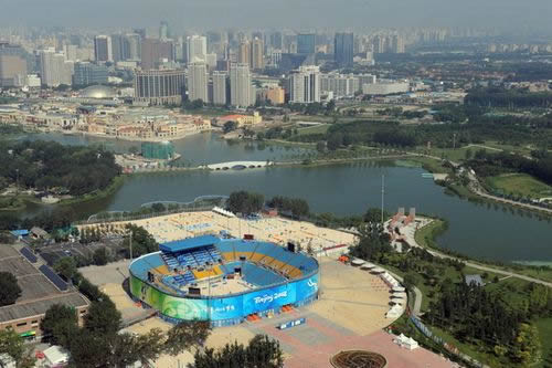 朝陽(yáng)公園沙灘排球場(chǎng)是北京奧運(yùn)會(huì)臨時(shí)場(chǎng)館之一,位于朝陽(yáng)公園北部原煤氣用具廠舊址,由中建國(guó)際設(shè)計(jì)顧問(wèn)有限責(zé)任公司設(shè)計(jì)。整個(gè)比賽用地包括一個(gè)主比賽場(chǎng)、兩塊熱身場(chǎng)和六塊訓(xùn)練場(chǎng),共設(shè)觀眾席位12000個(gè),項(xiàng)目規(guī)劃占地面積184500平方米,建設(shè)用地面積150003平方米,總建筑面積14169平方米。包括一個(gè)住比賽場(chǎng)、兩塊熱身場(chǎng)、六塊訓(xùn)練場(chǎng)和三座附屬功能用房,主賽場(chǎng)結(jié)構(gòu)為管架式鋼結(jié)構(gòu)。綠化面積達(dá)70%以上,是占地面積最大、綠化面積最廣的場(chǎng)館之一。沙灘排球場(chǎng)館跟“鳥巢”一樣,都屬于鋼結(jié)構(gòu)建筑,用鋼量達(dá)2400噸。由于它形似“燕窩”,于是就有北有“鳥巢”、東有“燕窩”的戲說(shuō)。