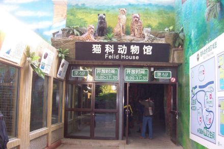 在館舍布置上,根據(jù)各種貓科動(dòng)物的生活習(xí)性和飼養(yǎng)方式,一層設(shè)有八間獸舍和運(yùn)動(dòng)場,主要飼養(yǎng)豹貓、獰貓、猞猁、美洲豹、美洲獅、黑豹;二層設(shè)有四間獸舍和運(yùn)動(dòng)場,主要飼養(yǎng)華南豹、朝鮮豹,每間獸舍都有相對(duì)應(yīng)的室外運(yùn)動(dòng)場。并單獨(dú)設(shè)立了不對(duì)游人開放的三間治療獸舍和室外運(yùn)動(dòng)場,作為動(dòng)物的休養(yǎng)飼養(yǎng)獸舍。在場館的南側(cè)單獨(dú)設(shè)有獵豹露天展區(qū)。