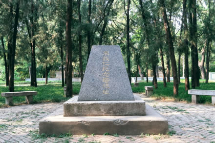 辛亥革命先驅(qū),中國國民黨元老宋教仁在袁世凱的北京政府擔(dān)任農(nóng)林部總長期間,曾在農(nóng)林部下屬的農(nóng)事實(shí)驗(yàn)場內(nèi)鬯春堂居住。民國三年(1913年)3月宋教仁獲選國民政府總理,被袁世凱刺殺。此后,在宋教仁住過的鬯春堂北面建立了一座2米高的“宋教仁紀(jì)念塔”,塔型采用古希臘方尖碑的形式,環(huán)塔四周種植柏樹百余株。1966年文化大革命爆發(fā),因?yàn)樗谓倘实纳矸轂閲顸h元老,其紀(jì)念塔被毀,僅余二層混凝土基座。