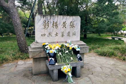 民國二年(1912年)1月16日由革命黨人黃之萌、張先培、錢鐵如、吳若龍、楊禹昌、羅明典、鄭毓秀等18人組成的暗殺團(tuán)體在北京東華門伺機(jī)刺殺袁世凱,制造了東華門事件,當(dāng)場炸死袁世凱衛(wèi)隊(duì)長等10余人。革命黨人黃之萌、張先培、楊禹昌等10人被捕并被殺。民國二年(1912年)2月,南京臨時(shí)政府褒揚(yáng)彭黃張楊四人的革命業(yè)績,追贈(zèng)彭家珍為大將軍,并為彭家珍、楊禹昌、黃芝萌、張先培等四位烈士在農(nóng)事試驗(yàn)場營建墓地。整個(gè)墓地呈正八角形,距地面約1米,正中立約8米的紀(jì)念碑,碑上刻“彭、楊、黃、張四烈士墓”。底座的東南、東北、西南、西北各有七級(jí)臺(tái)階通向紀(jì)念碑。四烈士就安葬于正南、北、東、西四面的石冢下,每座墓前均有碑文,記錄烈士事跡,并有中國國民黨黨徽裝飾。1966年文革爆發(fā),紅衛(wèi)兵砸毀了飾有青天白日標(biāo)記的四烈士墓,先僅存一塊四烈士墓遺址碑存留。