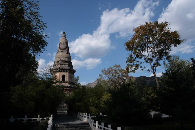 玉皇塔 玉皇塔位于大石窩鎮(zhèn)高莊村北的山坡上。該塔建于遼代,坐北朝南,為八角七級密檐磚塔,通高15米。塔座為八角須彌座式,上面飾有磚雕的人物故事、動物圖案等。塔身正面開券門可以入塔,門內(nèi)曾供奉漢白玉的玉皇大帝像,所以稱玉皇塔。塔身上承七級密檐,各角梁均懸有銅鈴,塔頂八角攢尖,八條頂脊自頂端的封頂鐵制寶珠向八方延伸,盡頭有垂獸、套獸。塔頂置寶珠,上立一根鐵柱塔剎,直插藍(lán)天。玉皇塔立于山巔之上,古樸典雅,工藝精湛,是房山古塔中的上品。 1995年10月20日,玉皇塔被北京市人民政府公布為為北第五批市重點文物保護(hù)單位。 |