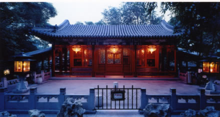 一座宏偉莊重的五開間廳堂,也是萃錦園中路最主要的建筑。其前出抱廈,后帶平臺,兩側(cè)有游廊通向東西兩廡。它在園中蝠池、邀月臺、水榭、大戲樓等建筑的簇擁下,顯得富貴堂皇,景致優(yōu)美。這里原是主人游園時吟詩、作畫的地方,也曾是恭親王奕訢宴請重要賓客的處所。