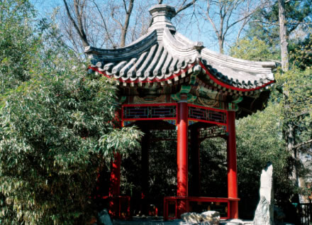 其建筑彩繪上的斑竹,全部是由油工一筆一筆畫上的。該建筑的造型和彩畫被譽為“古建筑中只此一例”,在花園主山和府墻的蔽護下,幽靜而秀美,恭親王奕訢經(jīng)常在此和大臣們謀劃軍國大事。這里也是個消夏納涼的好地方。后成為恭親王之孫、著名書法家溥儒(溥心畬)的書房。