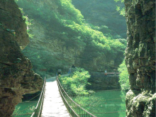 棧道:京東大峽谷以五潭稱(chēng)奇,然而跨四潭的棧道也稱(chēng)標(biāo)新立異,各不相同,成為大峽谷的又一奇觀,一、二棧道依崖而成,似長(zhǎng)龍臥坡,四潭棧道由數(shù)十根鋼索相連而成,攀崖而上,跨潭而過(guò),似臥頂長(zhǎng)虹,走在上面搖搖晃晃,險(xiǎn)象橫生,難免不讓人想起紅軍強(qiáng)渡“大渡河”、勇過(guò)鐵索橋的壯舉,游客們身臨其境,其感覺(jué)自當(dāng)終生難忘。