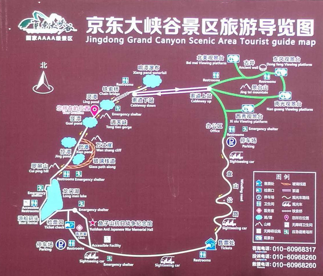 京東大峽谷是是集高山、峽谷、湖面、深潭為一體的綜合型自然風(fēng)景區(qū)。位于平谷城區(qū)東北的山東莊鎮(zhèn)魚(yú)子山民俗旅游村,距市區(qū)(東直門(mén))80公里。 景區(qū)擁有廣闊的湖面、各異的深潭、蔥翠的山野,還有連接大峽谷和井臺(tái)山的落差長(zhǎng)達(dá)千米的高空索道。 京東大峽谷景區(qū)適游期長(zhǎng),景區(qū)四季景致不同,春時(shí)山花爛漫,百鳥(niǎo)鳴囀;夏時(shí)清風(fēng)和煦,爽利暢懷;秋時(shí)萬(wàn)山紅遍,層林盡染;冬時(shí)冰瀑高懸,銀裝素裹。四季所見(jiàn)所聞所感迥然不同,又各得佳妙,是平谷地區(qū)少見(jiàn)的適宜四季游覽的景區(qū)之一,也是北京地區(qū)少數(shù)適宜冬季觀光的景區(qū)之一。 “空中王子”阿迪力曾在大峽谷景區(qū)上空做“高空鋼絲生存表演”,該表演持續(xù)三天,引起了巨大轟動(dòng)。表演結(jié)束后,表演所用的鋼絲、保險(xiǎn)繩等設(shè)備仍留在景區(qū),景區(qū)利用這些設(shè)備并加以改進(jìn),增加了安全系數(shù),形成了高空走鋼絲項(xiàng)目。既可鍛煉膽識(shí),又可增強(qiáng)自信,不失為一個(gè)勇敢者的游戲。