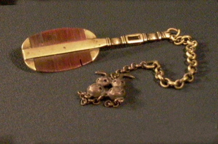 二樓展出主題包括:水煙具與嗅煙具、旱煙具與鴉片煙具、酒具、茶具、文房四寶、發(fā)飾簪釵、民間泥哨、粉撲耳套、筷子籠、弓弩箭具、民族刀具、傳統(tǒng)鎖具專題展。