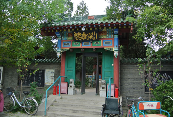張家灣清真寺 張家灣清真寺,位于張家灣鎮(zhèn)西街。中軸線上主體建筑禮拜殿,勾連搭四卷,硬山簡瓦,規(guī)模較大。一三兩卷為箍頭脊,二卷為調(diào)大脊,大吻壯觀,小獸玲瓏。第四卷明間為窯殿,四角攢尖,綠琉璃寶頂高聳天空,次間則為卷棚頂,別具一格。博古彩畫精美,西頭磚雕別致,嵌山方圓木窗活潑,井口天花鮮艷整潔,南北配殿與禮拜殿之間有海棠柱曲廊相連。結構嚴謹,錯落有致。 |