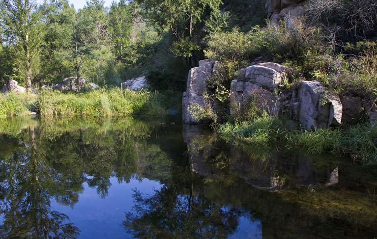 雙秀峰自然風(fēng)景區(qū) 雙秀峰自然風(fēng)景區(qū)位于大莊科鄉(xiāng)大青溝村東,鐵爐村南1.5公里,鄉(xiāng)駐地南7.8公里處。南與昌平接壤,北有鐵爐村,西沙梁村,東有大秦鐵路鐵爐火車站,西為連綿群山。雙峰并峙,直插云霄,中有一條石縫,故名。海拔672米,整個(gè)山峰大部分為褚紅色粗糙花崗巖,山西北側(cè)有匯泉而成的溪流,是碓石口河(東沙河)發(fā)源地。
