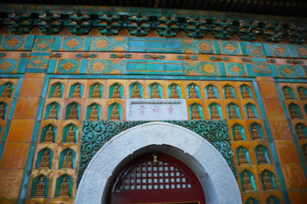 智慧海是萬壽山頂最高處一座宗教建筑,是一座完全由磚石砌成的無梁佛殿,由拱券結(jié)構(gòu)組成。建筑外層全部精美的黃、綠兩色琉璃瓦裝飾,上部用少量紫色、藍色的琉璃瓦蓋頂,尤以嵌于殿外壁面的千余尊琉璃佛更富特色。“智慧!币辉~為佛教用語,本意是贊揚佛的智慧如海,佛法無邊。該建筑雖極像木結(jié)構(gòu),但實際上沒有一根木料,全部用石磚發(fā)券砌成的,沒有枋檁承重,所以稱為“無梁殿”。又因殿內(nèi)供奉了無量壽佛,所以也稱它為“無量殿”。