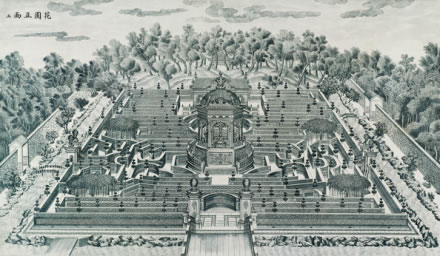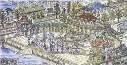 圓明園的位置在掛甲屯的北面,距暢春園約一里多路,即今北京大學(xué)的北邊,清華大學(xué)以西?滴鯐r的圓明園,里面有前湖、后湖等,其內(nèi)建有“牡丹臺”“天然圖畫”等園景。當(dāng)時圓明園還是一座藩賜園,規(guī)模不能超過皇帝的暢春園,所以建景不多,名聲也不大?珊髞黼S著乾隆皇帝的登基,清王朝的盛世的到來,在其多年陸續(xù)擴建中,終于成為中國最宏偉的皇家園林。
