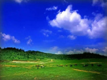 登峰遠眺,眼前為之一亮,萬峰林海,起伏而不失平坦,鑲嵌在山林之間如碧玉翡翠般的遼闊草原,野花似錦,延綿天際,牛羊徜徉其間,如詩如畫;茫茫林海、蒼翠欲滴、景色嫵媚多姿,清風(fēng)吹拂、涼爽宜人;一年四季,大自然賦予仙女山春觀花,夏乘涼,秋賞月,冬滑雪的獨特優(yōu)勢。林海、奇峰、牧場、雪原被游客稱為仙女山四絕,目之所及,處處都可入畫,萬物皆可入詩;有“落在凡間的伊甸園”之美譽。綠茵的春季,仙女山被此起彼伏的山丘、濃濃淺淺的綠罩著,朵朵盛開的野花,簇擁成團,天藍得透亮、白云肆意的變換著各種姿態(tài),成群牛羊在明媚的陽光中悠閑地倘佯于原野間。山峰、山谷、森林與草原渾然一體,交相輝映。給人以陰柔與陽剛相濟的和諧美。漫步于森林草原間,疲憊的身心將得到輕拂……一切的一切,讓你在春日的仙女山草原上輕輕地飄忽而來!