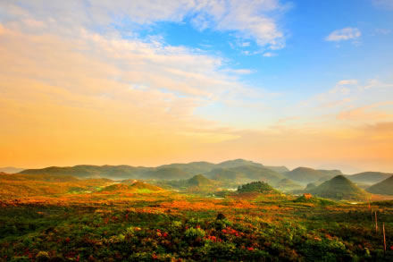 川河蓋草場(chǎng)旅游區(qū)平均海拔950米,全年平均氣溫12.1攝氏度,森林覆蓋率43%。游資源極其豐富,“春看映山紅遍、夏可乘涼避暑、秋觀芭毛秋雪、冬賞北國(guó)風(fēng)情”。依托天然的四季植被景觀,獨(dú)具特色的石頭茅草建筑,開(kāi)闊的坪壩地形,可以開(kāi)展豐富多彩的親近自然、回歸自然的活動(dòng)。主要以生態(tài)觀光,回歸自然為主要功能。景點(diǎn)及節(jié)目:映山紅(杜鵑花)節(jié)、植物科考、溶洞探險(xiǎn)、公路景觀、秋冬賞雪景、高山狩獵及騎射。