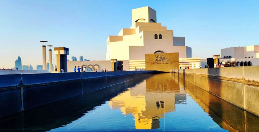 伊斯蘭藝術(shù)博物館 多哈伊斯蘭藝術(shù)博物館位于卡塔爾首都多哈海岸線之外的人工島上﹐占地4.5萬平方米,是迄今為止最全面的以伊斯蘭藝術(shù)為主題的博物館。博物館外墻用白色石灰石堆疊而成,折射在蔚藍(lán)的海面上,形成一種懾人的宏偉力量。而再看建筑的細(xì)部,典型的伊斯蘭風(fēng)格幾何圖案和阿拉伯傳統(tǒng)拱形窗,又為這座龐然大物增添幾分柔和,稍稍中和了它的英武之氣。博物館中庭偌大的銀色穹頂之下,150英尺高的玻璃幕墻裝飾四壁,人們可以透過它望見碧海金沙。