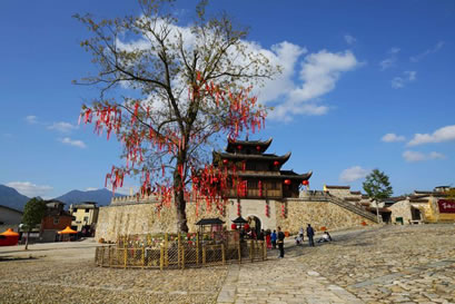 和平古鎮(zhèn)現(xiàn)存東北兩座譙樓。東門譙樓是三重檐歇山式,而其他三座譙均是兩重檐的。東門譙樓,門洞用石條砌成,墻體用大塊的卵石筑成。城墻腳下的這塊“禁止搬運(yùn)、保固地方”的石頭,是和平“舊市三禁碑”之一,為清代設(shè)立。由于當(dāng)時(shí)社會(huì)地主少、農(nóng)民多,農(nóng)民每次把收成的大部分上交給地主,在青黃不接的時(shí)候,糧價(jià)上漲,地主就把大部分的糧食外運(yùn)到邵武城關(guān)或福州,造成產(chǎn)糧地變?yōu)槿奔Z地,農(nóng)民面臨饑餓的威脅,因而設(shè)此碑,并輪流放哨,規(guī)定所有私自外運(yùn)的糧食都必須沒(méi)收或低價(jià)收購(gòu),因而它起到維護(hù)當(dāng)時(shí)的糧食市場(chǎng)的作用。北門譙樓,當(dāng)?shù)厝朔Q“武陽(yáng)樓”,因它對(duì)面的山叫武陽(yáng)山,清同治年間翻修過(guò)。城門的門洞用條石砌成,比東門門洞高大。城門兩邊各保留了一段用鵝卵石筑成的明城墻,鵝卵石上長(zhǎng)滿青苔,漫漶的縫隙間長(zhǎng)著青青野草,四季皆有野花開放,充滿了詩(shī)情畫意。風(fēng)雨譙樓,見(jiàn)證百年夕陽(yáng)煙雨;古樸城門,迎送多少古鎮(zhèn)喜憂。譙樓走過(guò)的是悠悠歲月,形容雖然殘破斑駁,留下的卻是耐人尋味的古鎮(zhèn)歷史。