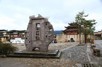 東門街兩旁老房子擠擠挨挨,多為磚木結(jié)構(gòu)。街面鋪設(shè)石板,塊塊光滑,雨后更是光潔如鏡,如詩(shī)如畫。詩(shī)云:“江南冷雨北吹斜,人影百姿映在街。潔石鏡明非打銼,但憑千載萬(wàn)家鞋!苯置婷扛100米就有一個(gè)用條石鋪成,狀似棋盤的圖案,當(dāng)?shù)厝朔Q其為棋盤石。棋盤石有何作用呢?傳統(tǒng)的說(shuō)法是:和平歷代都有大量的人士中科舉或在外做官,他們衣錦還鄉(xiāng),榮宗耀祖,騎馬或坐轎回來(lái),進(jìn)入城堡,每到一塊棋盤石就停住,下馬或下轎稍停片刻,以顯示他的榮耀和光彩。還有一個(gè)作用是:有一定身分或地位的人家出殯,棺木每抬到一處棋盤石就停下來(lái),讓孝子賢孫們跪下叩拜,拜完再抬起棺木往前走。一般沒(méi)有官職或身分地位的人家則沒(méi)有在這里停棺叩拜的資格。