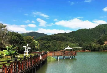 建在九鵬溪湖面上。居住在其中,讓你有種水上悠哉,漁歌唱晚的感覺。