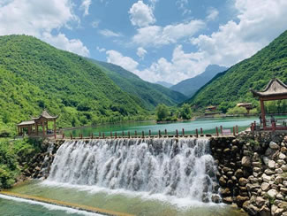 大河壩景區(qū)(娥嫚溝)則是一副畫卷,山清水秀,鳥語(yǔ)花香,峰回路轉(zhuǎn),曲經(jīng)通幽,大面積的原始森林是一個(gè)天然氧吧,海拔4153米的雷古山,是隴南最高峰,山頂是終年不化的積雪,雪線以下是云霧繚繞的茫茫林海,既有黃山之雄偉,又有華山之奇險(xiǎn)。置身期間,野趣橫生,心曠神怡,有柳林臥龜,石門天塹,補(bǔ)天石,神龜戲水,金樽瀑,回音壁,賽馬灘,雷古雄峰等主要景點(diǎn)供游客觀賞。