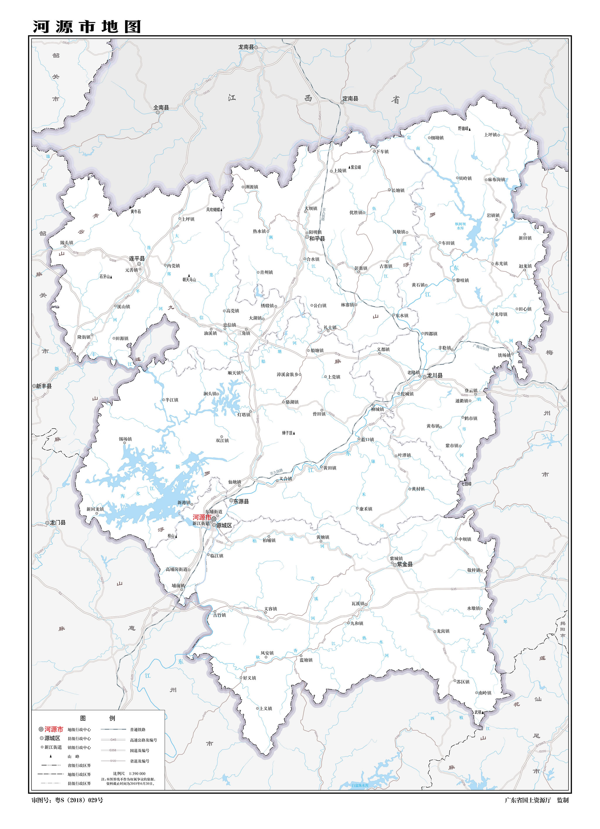 1988年1月,經(jīng)國務(wù)院批準,河源撤縣設(shè)置地級市,原河源縣劃分為河源市源城區(qū)和郊區(qū);河源市轄源城區(qū)、郊區(qū)、和平縣、龍川縣、紫金縣、連平縣。1993年11月8日,經(jīng)國務(wù)院批準,河源市郊區(qū)改名為東源縣。