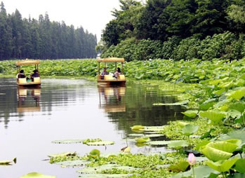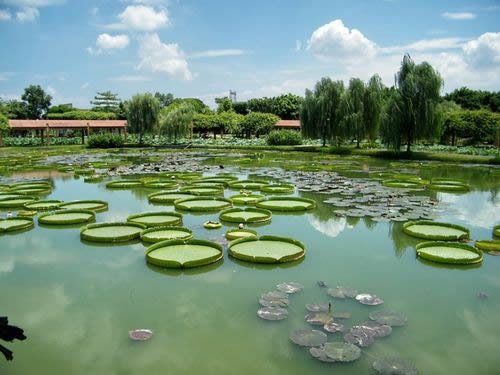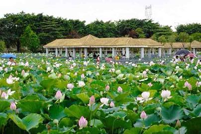 荷花園內(nèi)可觀賞到480個(gè)珍稀的荷花品種,其中有太空培育的“太空蓮”、遼寧省出土的 “古代蓮”等珍稀品種,數(shù)十個(gè)睡蓮品種,包括從臺(tái)灣引進(jìn)的四季花開的既可觀賞又可食用,同時(shí)還有較高的藥用價(jià)值的香睡蓮品種,以及各種罕有的水生植物。還有直徑達(dá)1.98米,可以承重40公斤的王蓮、以及形態(tài)萬千的數(shù)百個(gè)水生花卉品種。更種植了近100種各式各樣的奇瓜異果,更有直徑60公分,重達(dá)85公斤的巨型大南瓜、開花機(jī)率僅為十萬分之一的“并蒂蓮”奇觀,每年均數(shù)次競(jìng)放荷花世界爭(zhēng)妍斗麗。并按個(gè)同功能劃分八大區(qū):文化廣場(chǎng)、中心 區(qū)、品種觀賞區(qū)、王蓮和睡蓮區(qū)、飲食娛樂區(qū)、生產(chǎn)科研育種區(qū)、籽 蓮區(qū)等組成。您可以乘車或徒步游覽景區(qū),也可以蕩舟在荷花叢中, 采摘蓮于、蓮藕,別有一番情趣。