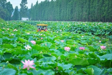 占地110畝呈長(zhǎng)塘型的采蓮區(qū),營(yíng)造出一條混合著人工與天然雕飾美于一體的“綠荷(河)”,風(fēng)過荷舉,蓮障千重。據(jù)統(tǒng)計(jì),采蓮區(qū)在每年生長(zhǎng)旺盛的7、8、9月間,每日可采摘優(yōu)質(zhì)蓮蓬約3000~5000個(gè),蓮蓬果實(shí)飽滿,最大的蓮蓬直徑可達(dá)18厘米。游客至此,既可親身經(jīng)歷泛舟荷塘,放歌瀏覽蓮葉接天的大千氣勢(shì),更可一嘗采蓮品蓮的田園野趣。
