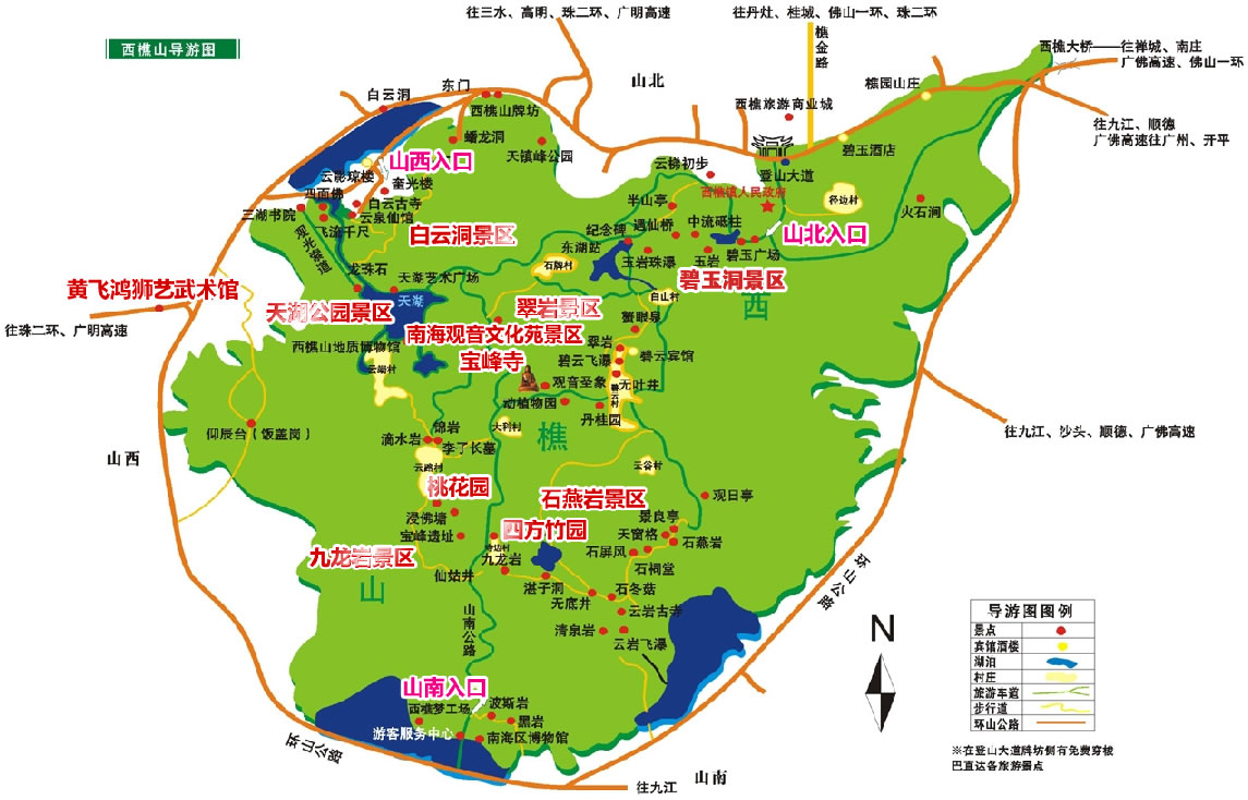 西樵山是一座沉寂了億萬年的死火山,自然風(fēng)光美不勝收,山上有72奇峰和36奇洞及大大小小的湖泊、泉瀑和深潭;由于西樵山林深苔厚,儲存了極為豐富的水資源,因而被稱為“固體水庫”。整個包括石燕巖、 作為“珠江文明燈塔”的西樵山有著6000多年的文明史,古西樵山人創(chuàng)造了燦爛的“雙肩石器”文明;到明清期間,有大批的文人學(xué)子曾隱居在這里,使西樵山獲得了“南粵理學(xué)名山”的雅號;西樵山還是“南拳文化”的發(fā)源地,一代宗師黃飛鴻就出生在這里;西樵山民風(fēng)淳樸、古韻猶存,到這里來旅游,還能觀賞到山里百姓的婚嫁、生產(chǎn)習(xí)俗以及各種民間游藝活動。