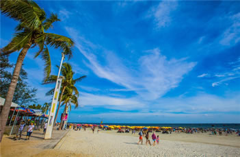 在銀灘長達七八個月的誘人泳季,在藍天白云下沐浴著燦爛的陽光,在潔白的沙灘上游玩嬉戲,在輕柔的波浪中盡情暢游,在微腥陣陣的海風中冥想;乘海上降落傘翱翔藍天,駕驚險刺激的摩托艇乘風破浪,還有悠閑輕松的沙灘運動,愉情悅性的鳥類表演,賞心悅目的異國風情歌舞,極目天涯,海天相連,漁帆點點。
