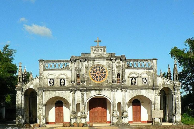 羅浮恒望天主教堂距離市中心約5公里,由法國傳教士建于1832年,歷史悠久。當(dāng)時(shí)的羅浮天主教堂屬北海教區(qū)。初建時(shí)教堂占地10000余平方米,設(shè)有教堂、鐘樓、育嬰室(收養(yǎng)棄嬰)、男校、仁愛堂、圣堂、織紡堂等。由于歷經(jīng)歲月的沖刷、歷次政治風(fēng)暴的滌蕩以及人口不斷增加的影響,如今的羅浮天主教堂只剩幾百米的范圍內(nèi)。羅浮天主教堂是東興所有的三個(gè)教堂中最為典型的法式建筑。教堂正面及兩側(cè)由十幾根柱子托起,形成大半框形的走廊。每根柱子之間都砌成拱形的門的形狀,相互承接。每根柱子的上方都修成如鐘樓的樣式,并努力地讓它接近天空。