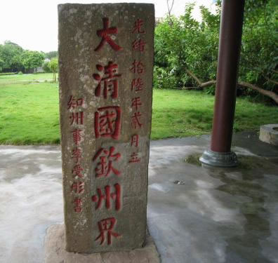 1885年6月9日,清政府與法國在天津簽定的《中法越南條約》規(guī)定,兩國邊界自竹山起,循北侖河出海口逆流而上,以河心為界線。防城港市與越南的邊界線,從竹山的北侖河口至峒中的北崗隘,長200多公里,全段以石碑為標(biāo)志,共立1至33號(hào)界碑。竹山界碑是清光緒十六年(公元1890年)所立的第一塊界碑,故稱大清國一號(hào)界碑。100多年來,竹山一號(hào)界碑歷盡滄桑,屹立于北侖河口巋然不動(dòng),顯示了中國領(lǐng)土的神圣不可侵犯,故竹山一號(hào)界碑具有較高的歷史價(jià)值和現(xiàn)實(shí)意義。