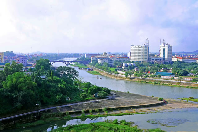 位置境域 東興市地處中國大陸海岸線最西南端,位于廣西壯族自治區(qū)南部、防城港市西部,東、西和北面與防城港市防城區(qū)接壤,東南瀕臨北部灣,西南與越南社會(huì)主義共和國海陸相連,與越南芒街僅一河之隔。區(qū)域面積590.21平方千米,海岸線長52千米,陸地邊境線長39.064千米。 東興市地處十萬大山山脈南沿,地勢北高南低,東南沿海為沖積平原,東、中部為低丘陵,北部為山地,最高山峰大鍋蓋嶺,海拔924米。 根據(jù)地貌形態(tài)和成因,境內(nèi)地貌主要可分為以下3種類型。 構(gòu)造剝蝕低山地貌:分布在馬路鎮(zhèn)北部和西部,主要由志留系砂礫巖、泥質(zhì)巖及千枚巖等巖層經(jīng)風(fēng)化剝蝕后形成的山地。 丘陵地貌:分布在市境中部廣大地區(qū),海拔一般在100米至500米,為峰巒起伏和緩地土嶺,切割深度一般不超過200米。其上常覆蓋松林、雜木林、竹叢以及肉桂、八角、果樹、橡膠、茶葉等經(jīng)濟(jì)林木。 濱海平原:分布在市境南面羅浮、竹山、巫頭、萬尾、山心及交東等地沿海一帶,海拔一般低于100米,地勢平坦,或略有起伏。濱海平原北部大多已開墾為稻田和耕地,這里阡陌縱橫、水網(wǎng)交織。