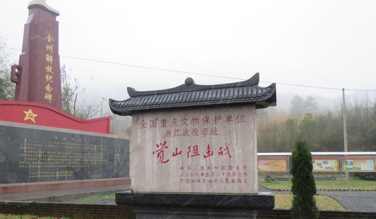 紅軍長征湘江戰(zhàn)役紀(jì)念園位于桂林市全州縣才灣鎮(zhèn)境內(nèi),是湘江戰(zhàn)役三大阻擊戰(zhàn)之一——覺山鋪?zhàn)钃魬?zhàn)遺址所在地。距離全州縣城15千米,距離高鐵全州南站12千米,距離全南高速全州西路口8.3千米。湘江戰(zhàn)役紀(jì)念園項(xiàng)目設(shè)計(jì)規(guī)劃占地面積約為64.67公頃,主要包括湘江戰(zhàn)役紅軍烈士紀(jì)念林和紅軍長征湘江戰(zhàn)役紀(jì)念館及相關(guān)配套設(shè)施。2019年被評(píng)為AAAA級(jí)景區(qū)。
