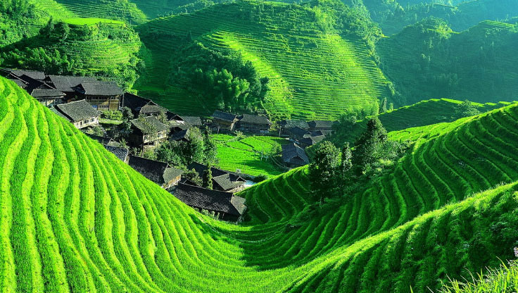 龍脊梯田,因山脈如龍的背脊而得名,是廣西著名風(fēng)景區(qū),始建于元朝,有近700年的歷史。龍脊梯田景區(qū)主要分為平安壯寨梯田和金坑紅瑤梯田。平安壯寨梯田有“七星伴月”和“九龍五虎”兩大著名景觀;金坑紅瑤梯田有“大界千層天梯”,“西山韶樂(lè)”和“金佛頂”三大著名景觀。這里的壯、瑤民族世世代代居住在青瓦木樓之中,淳樸善良。金竹壯寨被聯(lián)合國(guó)教科文組織稱(chēng)為北壯的楷模;黃洛紅瑤寨獲上海大世界吉尼斯集體長(zhǎng)發(fā)村之最;龍脊古壯寨至今保留著許多文物古跡。