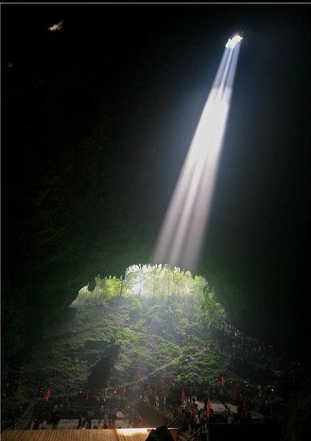 穿洞天坑地處樂(lè)業(yè)縣刷把村竹林壩屯,距縣城18公里。整個(gè)天坑呈多邊形,由六座山峰圍著,是所有天坑中峰體最多的天坑,屬世界六大超大型天坑之一。在所開(kāi)發(fā)的天坑中,惟有該天坑可通過(guò)溶洞走入坑底,一覽坑底之神心,穿洞天坑的存在增加了天坑旅游的神秘,新奇價(jià)值。特別是坑底西南端的廳堂式洞穴,其頂部發(fā)育有一個(gè)小口天窗,光柱自108米高處射下,令人感到洞廳的寬大與空曠,球形洞室及天窗的存在,增加了自然景觀的神秘感。該景點(diǎn)是集溶洞、地下河、光柱、原始林林于一體的“天坑”縮影。