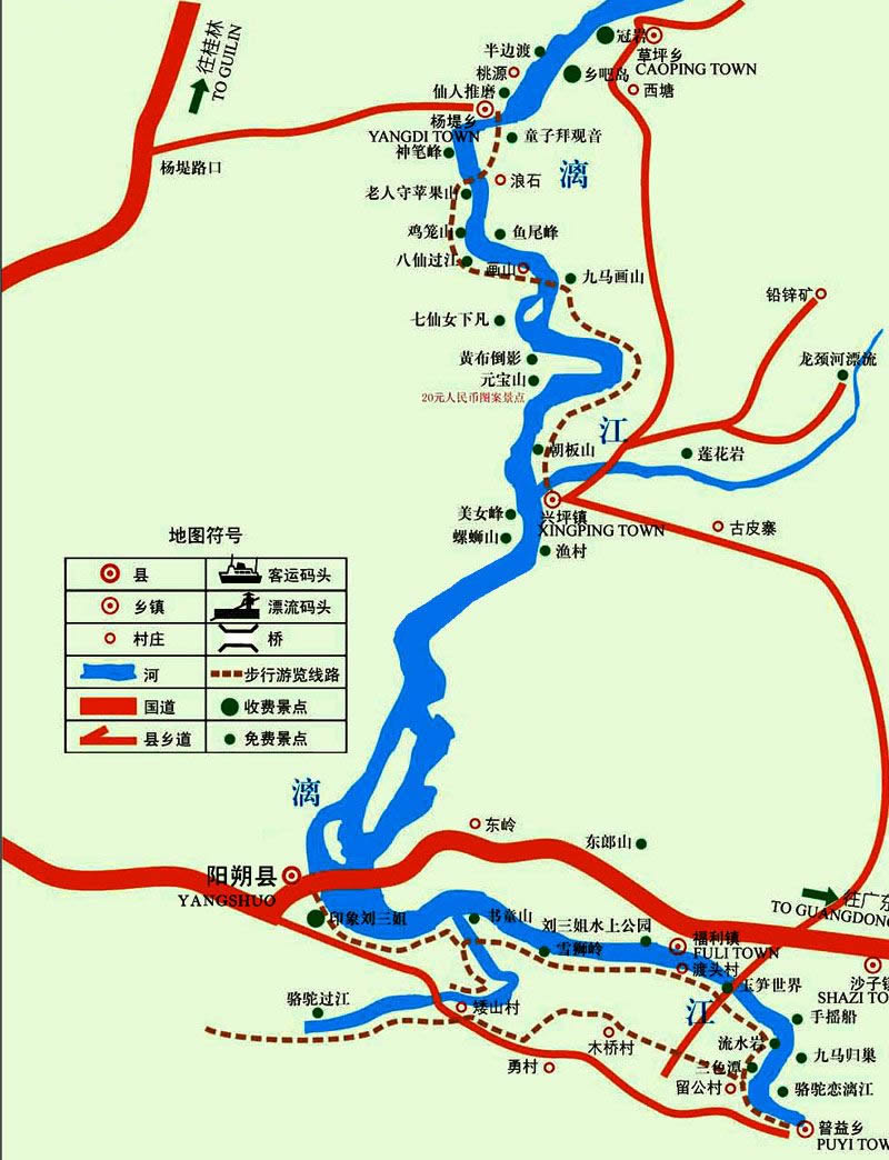興坪鎮(zhèn)位于廣西壯族自治區(qū)桂林市陽朔縣縣城東北部,漓江上游兩岸,距縣城25公里。漓江流經興坪,形成“S”字形河灣,是漓江風光的薈萃之地。葉劍英元帥《由桂林舟游陽朔》詩道:“春風漓水客舟輕,夾岸奇峰列送迎。馬躍華山人睇鏡,果然佳勝在光坪”。山水相依,景點密集,兼有奇、險、秀、美、趣的特點。