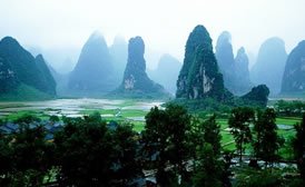桂林市漓江景區(qū)區(qū)域地形特點是北、東、西部較高,為碎屑巖中低山地貌。北部是五嶺之一的越城嶺,最高峰貓兒山,海拔2142米;東部為北東一南西走向的海洋山,主峰寶界嶺海拔1936米;西部是南北走向的天平山和駕橋嶺,主峰海拔皆在千米以上。景區(qū)中部為漓江巖溶谷地,南北長120余公里,東西寬20一60公里,發(fā)育有巖溶侵蝕平原,峰叢洼地和峰林平原等地貌類型,是一個較完整的水文地質單元。沿漓江分布有一系列的盆地。在溶蝕侵蝕平原和低地上,峭立著眾多的石峰并發(fā)育有大量的洞穴。從大圩以南的潛經村開始,漓江進入峰叢洼地的峽谷段,深切河谷相對高程達400余米,組成了綿延百里,馳名中外的巖溶山水畫廊。