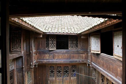 陶家院位于古城東北角,是清末木商陶明哲的住宅,為三間搭兩廂型建筑,四周圍高風火墻,天井鋪青石板,窗扇均為雕刻精美的木板花窗,上面雕有精致的鳥獸,其中的鏤空玲瓏木板雕鏤更為奇特,書房內有壁畫,家具陳設完全,工藝精良,裝飾典雅,屋前建有門樓及防火石缸,是古城最有代表性和保存最完好的古民居建筑。