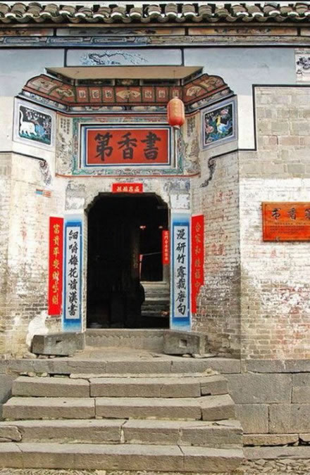 書香第位于南門大街,建于清末,書香弟意取文化之家,讀書之族,以知書識禮為立家之本。三間三進二天井,雙重檐出水,堂屋窗格為各式花窗,門前放有一對石鎖,鏨刻有“連中三元”、“連升三級”字樣,防火缸鐫刻有古代兵器戟等,作為練武人家的象征,大門門板用堅硬的木材青杠做成,十分牢固,門后地面安有青石鑿成的頂門槽,屋角備有頂門扛,供夜晚頂門使用,是隆里的典型民居。