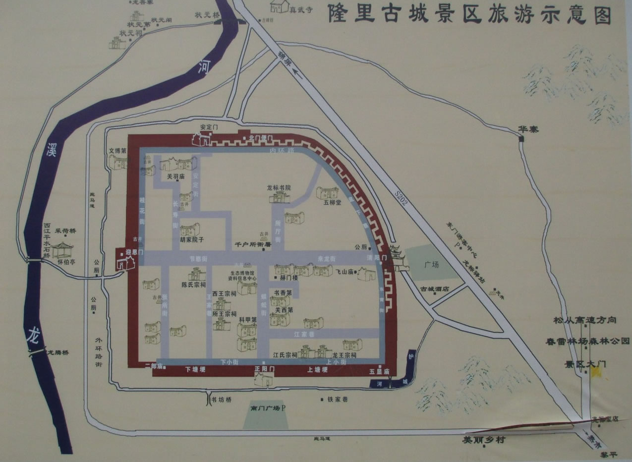 一日游:東門古城——龍標書院——觀音堂——蜈蚣街——王氏宗祠——西門鼓樓——北門街——古城墻——陶家大院——東門鼓樓 |