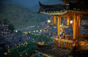 黃昏時(shí)分,西江千戶苗寨千家萬(wàn)戶就亮起了燈。隨著天色越來(lái)越暗,西江千戶苗寨變成燈的海洋,西江千戶苗寨呈現(xiàn)牛頭的形狀。西江千戶苗寨景區(qū)在山坡高處的路邊修建了觀景臺(tái),開(kāi)通觀光車。