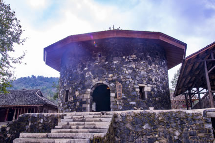 禾倉(cāng)是瑤山古寨標(biāo)志性的歷史古建筑,有的禾倉(cāng)已存在上百年。禾倉(cāng)建筑獨(dú)特,用四柱支撐,上層墊以木板,周圍用竹籬笆圍成圓形,頂上蓋以毛糙,這些禾倉(cāng)里面用來存放糧食和貴重物品,具有防潮、防盜、防鼠的功能。禾倉(cāng)下面通常會(huì)放置一些生產(chǎn)工具,或者供寨上的人們聚會(huì)聊天。