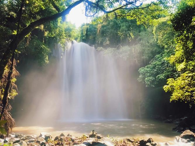 臨高古銀瀑布位于海南臨高縣皇桐鎮(zhèn)居仁村西部附近,距縣城以東20公里。史稱“古銀瀑布”,這一個大潭,有“三潭九曲”之美稱。瀑布系平川落差而致,落差20米,幅面20米,幅寬400平方米;周圍怪石林立,形狀各異,千姿百態(tài)。后面樹木茂密,宛如碧海,屹立在怪石上,枝繁葉茂,覆蓋如亭。錯節(jié)盤根,透出倔強(qiáng)的生命力。處處花香鳥語不斷