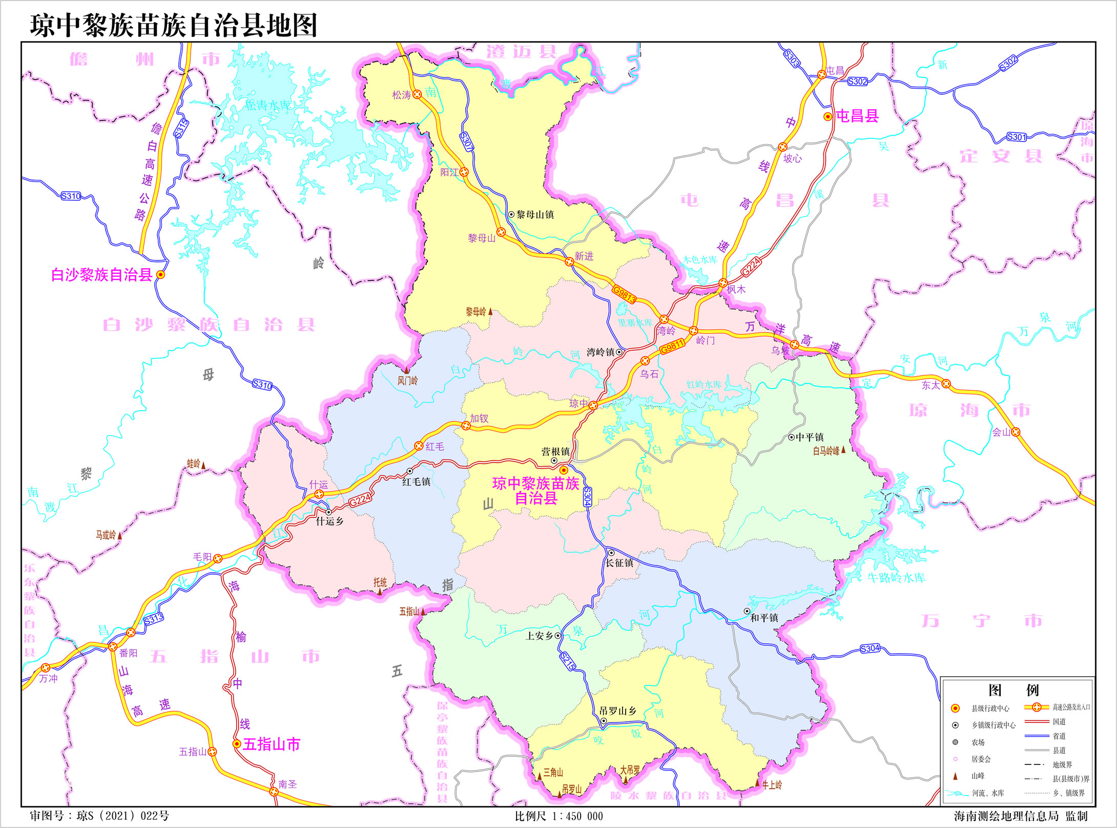 鎮(zhèn):營根鎮(zhèn)、灣嶺鎮(zhèn)、黎母山鎮(zhèn)、和平鎮(zhèn)、長征鎮(zhèn)、紅毛鎮(zhèn)、中平鎮(zhèn)